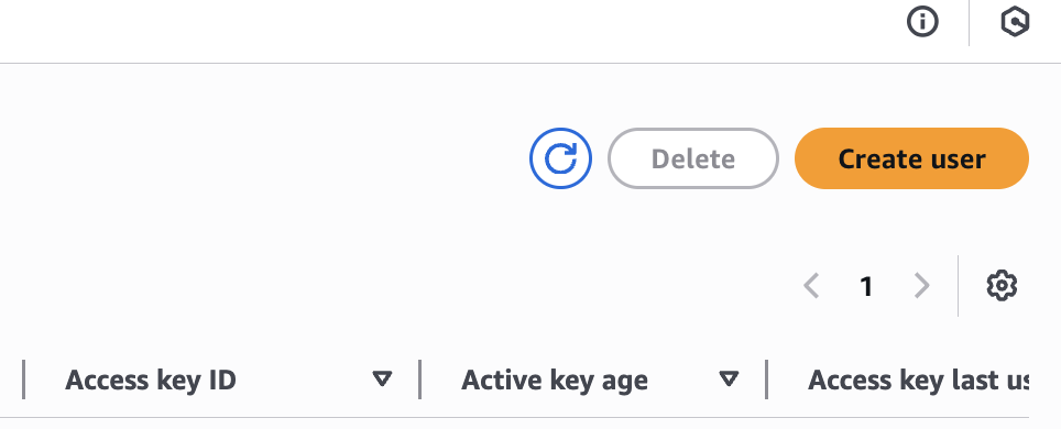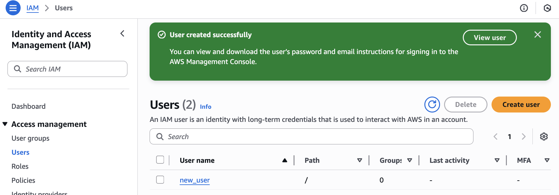 Click the Create user button at the top right.