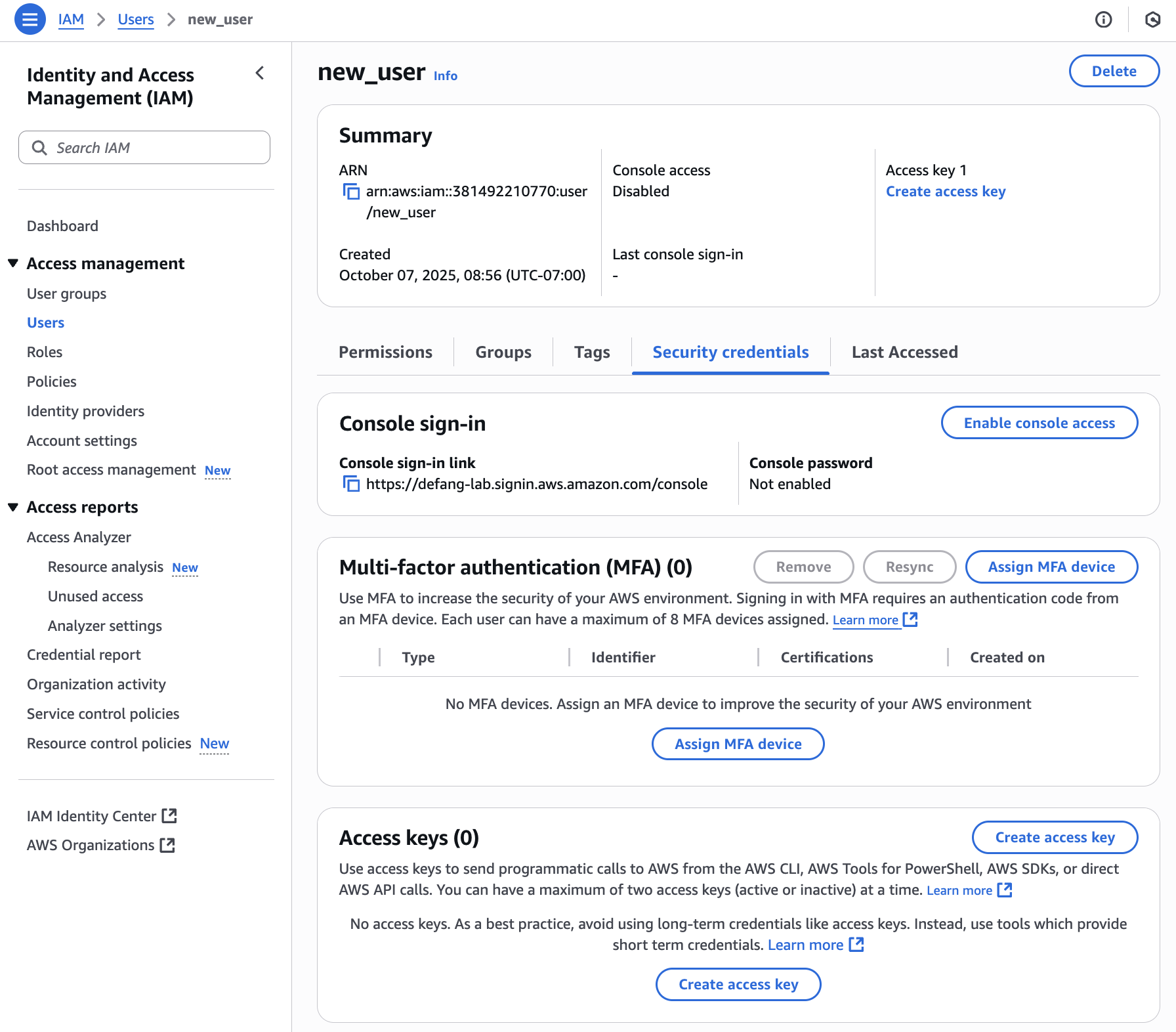 b. Create Access Key