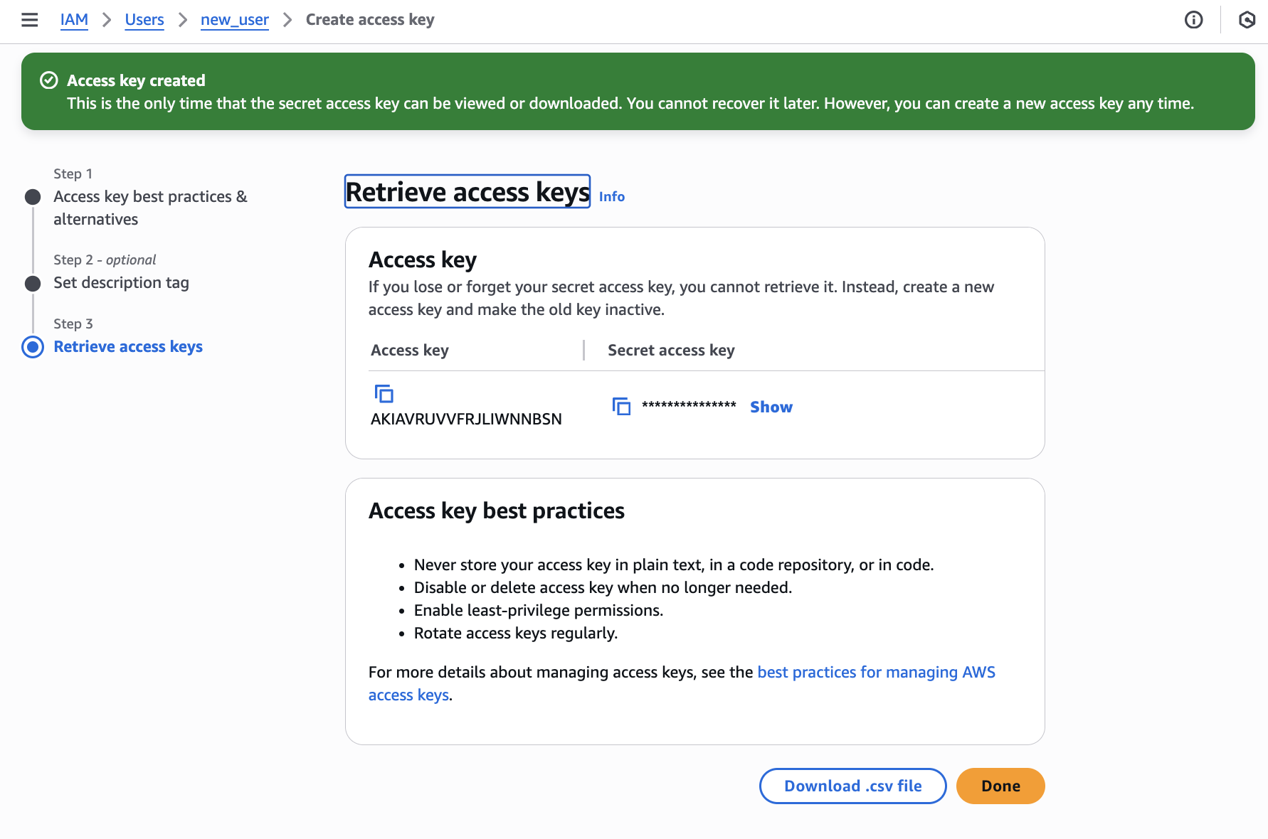 e. Save Your Access Keys
